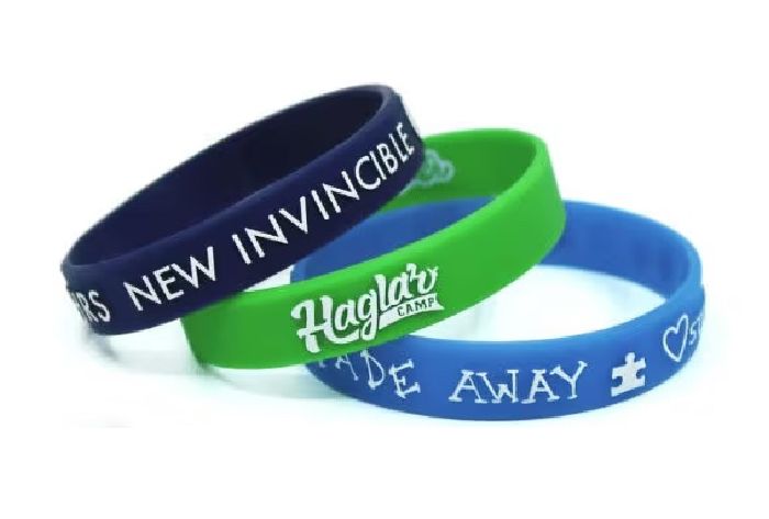 “Embossed” means that the design is raised from the surface of the bracelet creating a discreet and very attractive finish. Using this method your design will become a part of the wristband meaning it will never fade, crack, peel or disappear from the wristband, even after prolonged exposure to sun making this wristband one of the favourites among our clients.