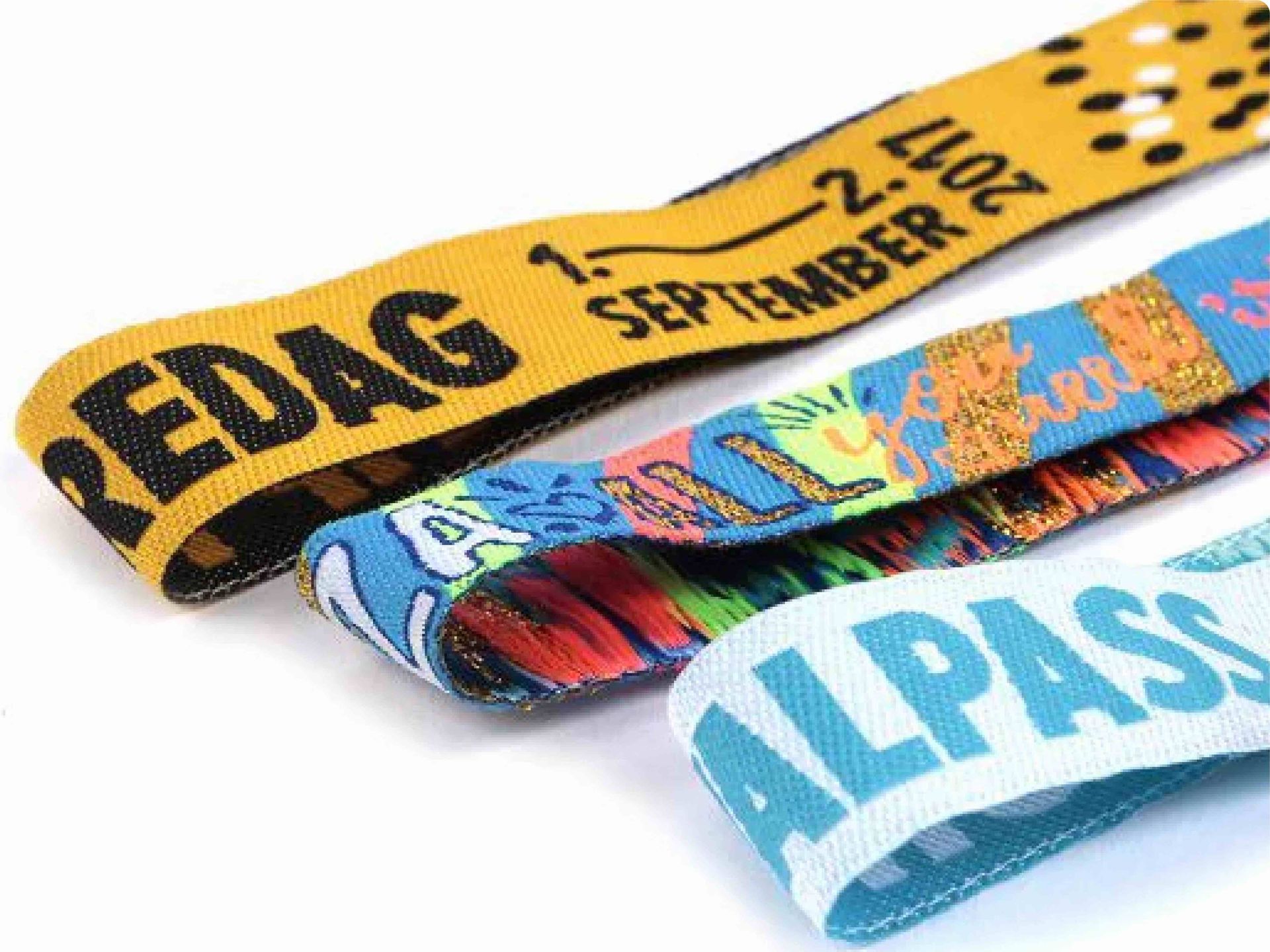Woven wristbands are the premium choice for festival and event organizers as it offers both - attractive, durable solutions for crowd control and visitor identification. Woven means that your design will be stitched into the wristband itself, meaning it will never fade away, crack or peel even after prolong exposures to sun. This is way the most quality wristband we have. Recommended use for this type of wristband is from 2 days plus.