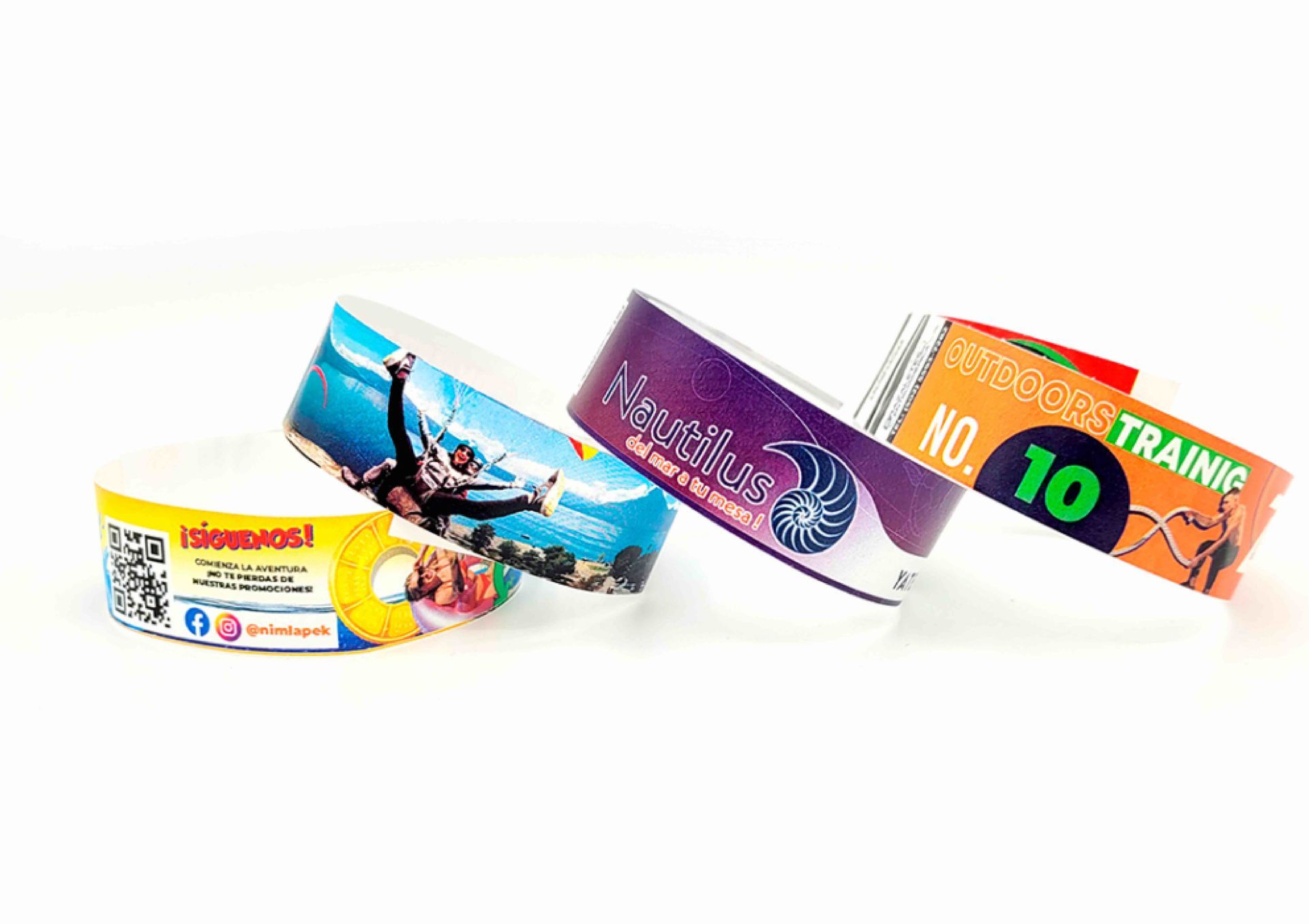 Our Tyvek Wristbands are made using Dupont quality material, it is very durable, water-proof and tear-resistant. These Tyvek Wristbands are available in any color with full color print. Wristbands can be adjusted to fit any wrist size, suitable for adults and kids alike.