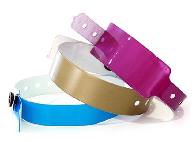 Vinyl wristbands are the premium choice for secure crowd control and identification. Product is constructed of multi layered vinyl for unbeatable strength, durability and comfort. Vinyl wristbands are waterproof, more durable and secure than Tyvek and Plastic wristbands. Vinyl wristbands are ideal for multiday use, are very comfortable to wear. These wristbands are commonly used by festival organizers as well as all inclusive hotels and resorts. Vinyl wristbands feature a locking plastic snap to prevent transfer.